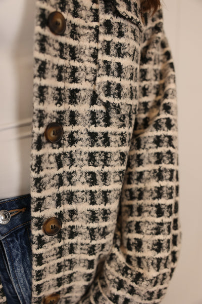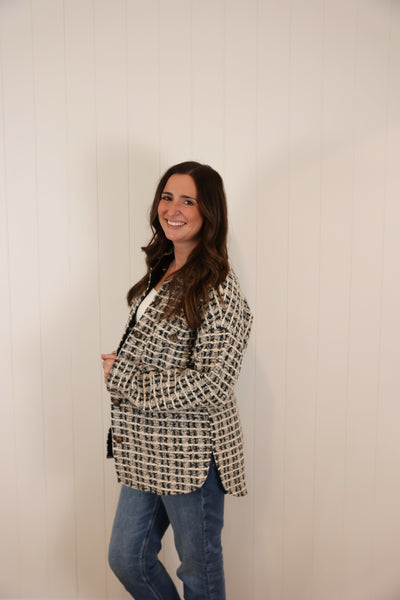 The Bouq Shacket combines sleek design with a longer back silhouette, offering a chic and flattering fit. Its stylish cut makes it an ideal layering piece for fall and winter, providing both warmth and elegance. Perfect for those seeking a refined yet cozy look during cooler seasons.